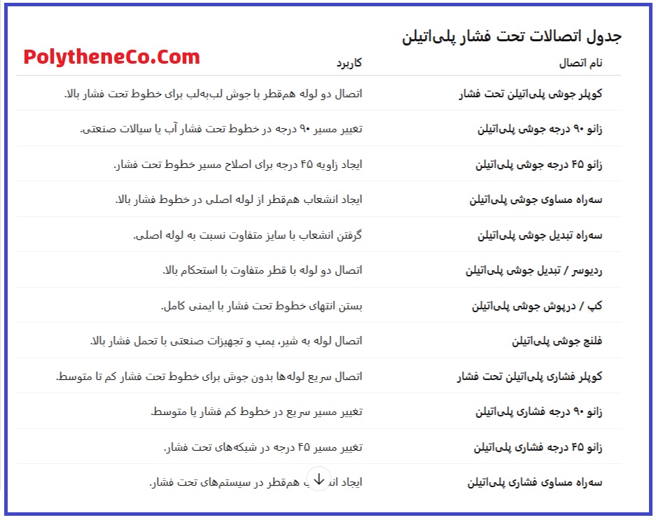 اتصالات تحت فشار پلی اتیلن + لیست قیمت